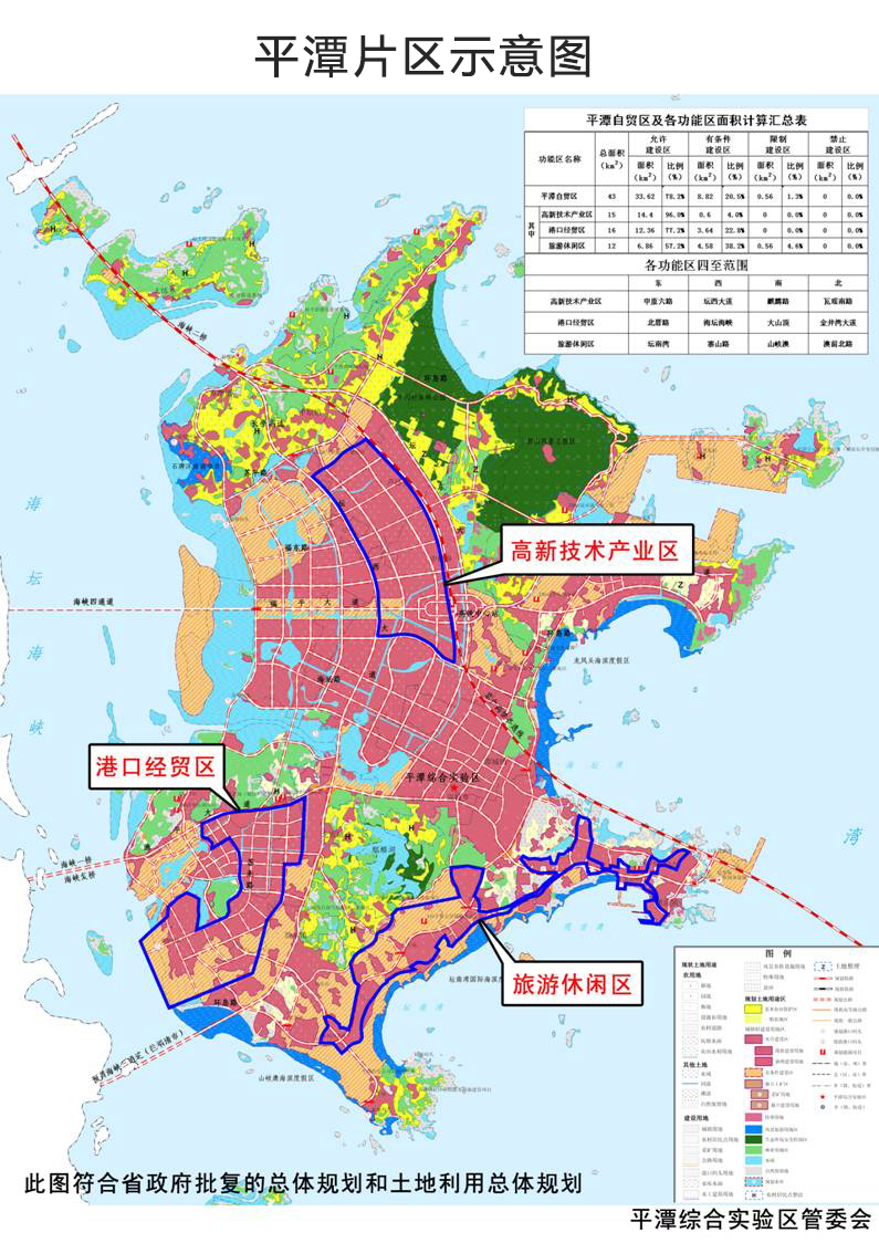 • 中國(guó)(福建)自由貿(mào)易試驗(yàn)區(qū)平潭片區(qū)總面積43平方公里。包括三個(gè)區(qū)塊:港口經(jīng)貿(mào)區(qū)16平方公里;高新技術(shù)產(chǎn)業(yè)區(qū)15平方公里;旅游休閑區(qū)12平方公里。